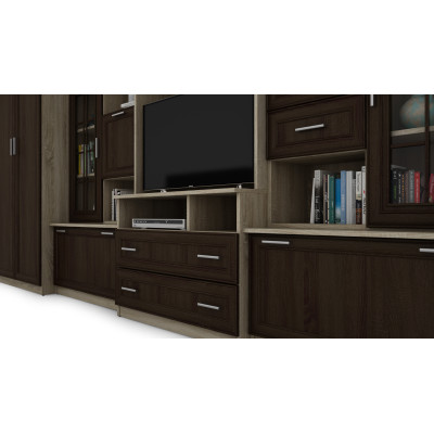 - TV cabinet with large recess for television (very spacious drawers at the bottom) and extension in the form of glass display case.