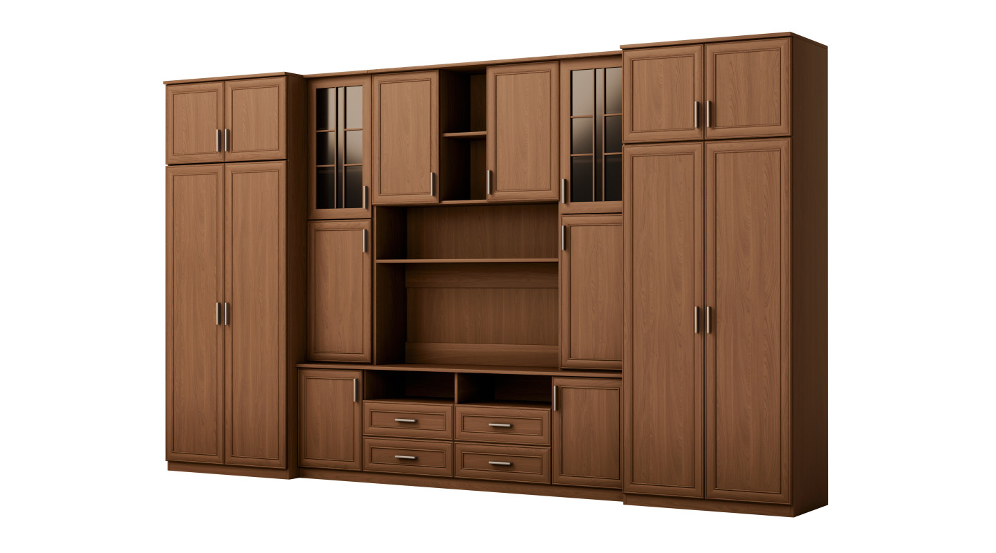 Thanks to its elegance and solid construction, the SAWA wall unit is ideal for traditionally decorated living rooms. Its classic look emphasizes the character of the arrangement. The use of high-quality wood-colored materials adds warmth and coziness to the room.