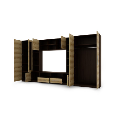 The NEPTUN wall unit is made from the highest quality double-sided laminated board 18 mm thick, which guarantees solidity and aesthetic appearance. The furniture is durable and resistant to damage. Solid connections, high-quality fittings and details guarantee long-term use and aesthetic appearance of the wall unit for many years.