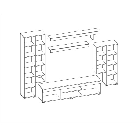 The Apollo wall unit is a furniture set that harmonizes together. Made from the highest quality furniture boards that are resistant to scratches and moisture. Their edges are covered with resistant PCV edging. The whole consists of several elements including: TV cabinet, shelves, display case and cabinets.