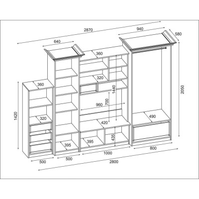 copy of Wall unit with spacious wardrobe, cabinets, bar, TV furniture - MILO