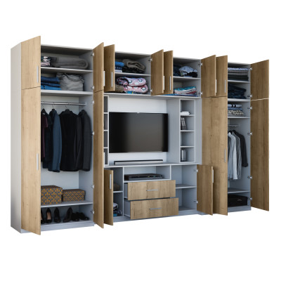 copy of Elegant Wall Unit with wardrobes, cabinets, TV shelf, width 380 cm - DAKO