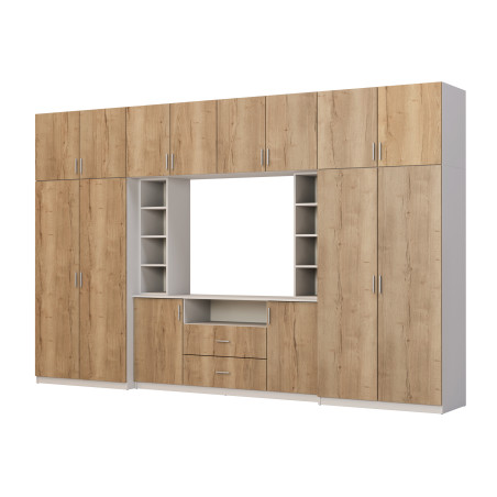 - lockable extensions with shelves over the entire width of the set, thanks to which the total height of the wall unit is as high as 240 cm.