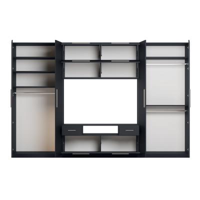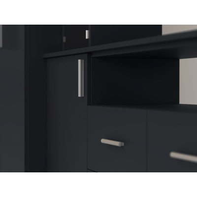 Do you dream of a spacious and functional furniture piece in your living room? Choose the Nesto wall unit. This is the perfect solution for small spaces. Why choose Nesto? Because, thanks to the spacious wardrobes with shelves and clothing rails, your wardrobe will always be organized. Comfortable, large drawers will accommodate both small items as well as bedding, towels and seasonal clothing.