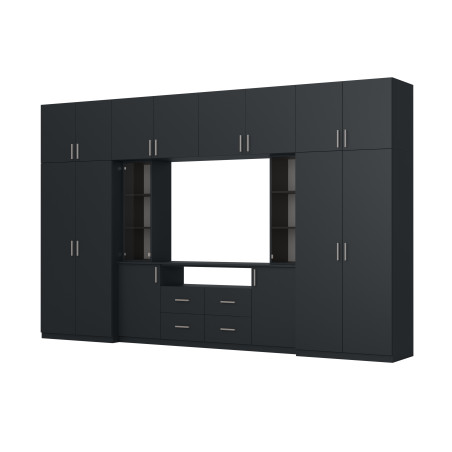 copy of Modern living room wall unit with spacious wardrobes and TV display case, 240 cm high - NESTO