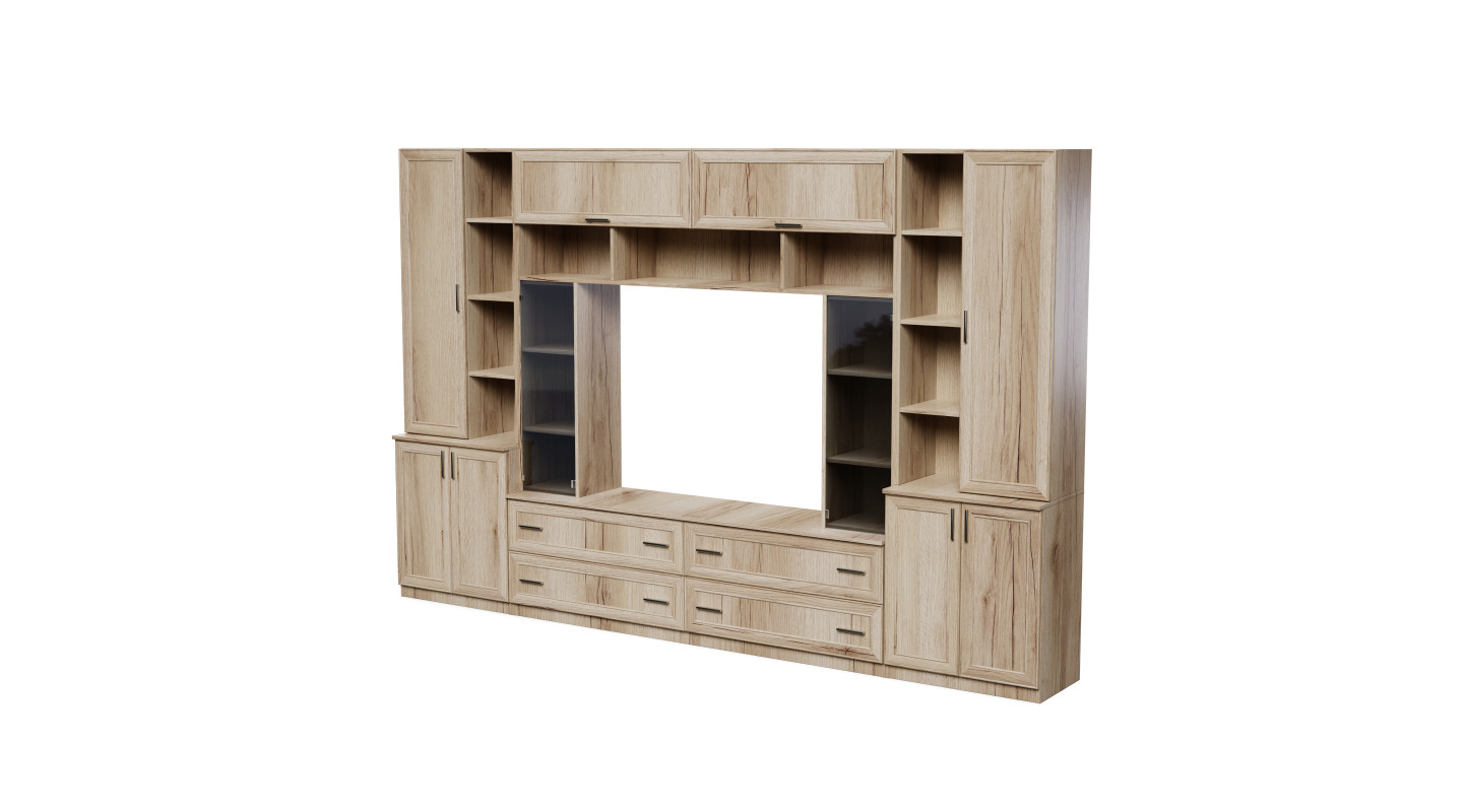 Looking for an elegant, functional and spacious piece of furniture that will be the heart of your living room? Go for the Modena wall unit – impressive in terms of design and spaciousness. At 340 cm wide and 220 cm high, the Modena wall unit presents itself exceptionally, providing a huge amount of storage space.