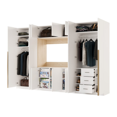 copy of Elegant Wall Unit with wardrobes, cabinets, TV shelf, width 380 cm - DAKO