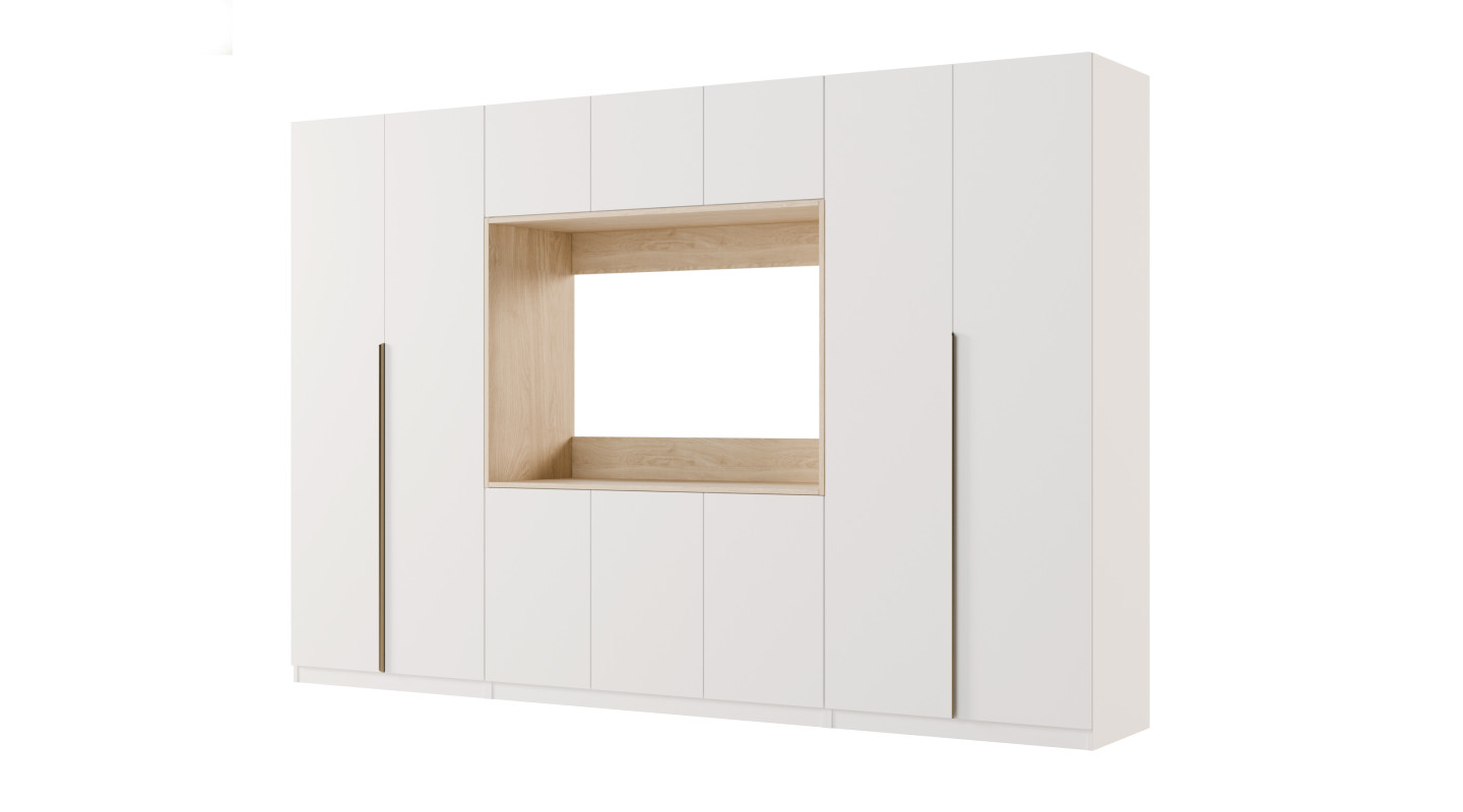 - lockable extensions with shelves over the entire width of the set, thanks to which the total height of the wall unit is as high as 240 cm.
