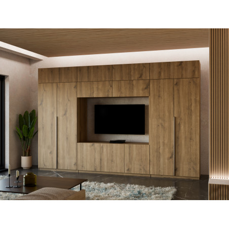 copy of Elegant Wall Unit with wardrobes, cabinets, TV shelf, width 380 cm - DAKO