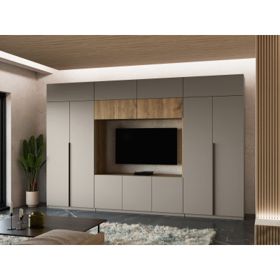 copy of Elegant Wall Unit with wardrobes, cabinets, TV shelf, width 380 cm - DAKO