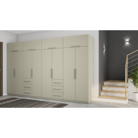 L'ensemble se compose de quatre segments séparés, qui ensemble créent une armoire spacieuse. Si nécessaire, les armoires peuvent être installées séparément. Chaque segment se distingue par une fonctionnalité et un objectif différents, et leur combinaison donne un ensemble extrêmement spacieux avec de la place pour littéralement tout !