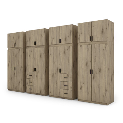 Vous cherchez une armoire très spacieuse qui vous permettra de maintenir l'ordre parmi les éléments de garde-robe de toute votre famille ? Choisissez l'armoire 380/240, que vous pouvez diviser en segments. Les espaces ont été équipés de tringles métalliques pour cintres et d'étagères hautes qui facilitent le rangement des vêtements, en plus de surmeuble qui accueilleront les objets rarement utilisés. Grâce aux tiroirs spacieux, vous trouverez facilement chaque objet recherché.