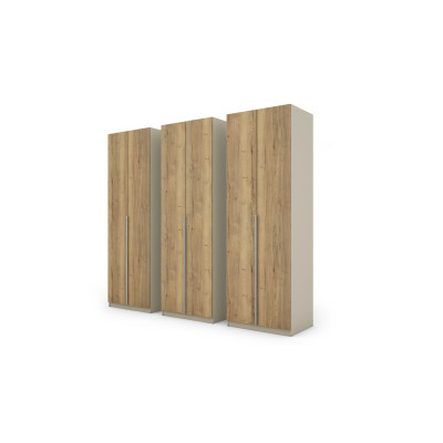 Armoire 6 portes avec miroir 240x240 cm – beige cachemire / chêne Halifax avec poignées argent