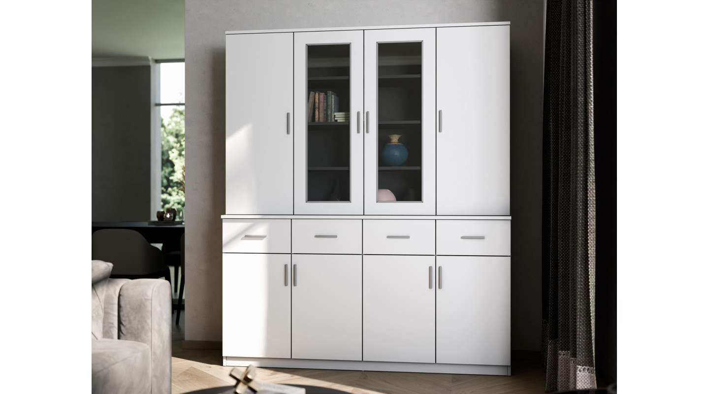 Le buffet 170 sera un meuble idéal pour le salon et la salle à manger. En plus de sa fonction pratique, il sert de décoration de la pièce. Il sera une vitrine parfaite de la maison et se révélera être un élément central qui attire l'attention dans l'intérieur, lui donnant un caractère unique. Le buffet, en raison de ses dimensions, accueillera à la fois vêtements, petits objets et vaisselle. Grâce aux vitrines vitrées, vous pouvez exposer des souvenirs de voyage ou un service à thé en porcelaine.
