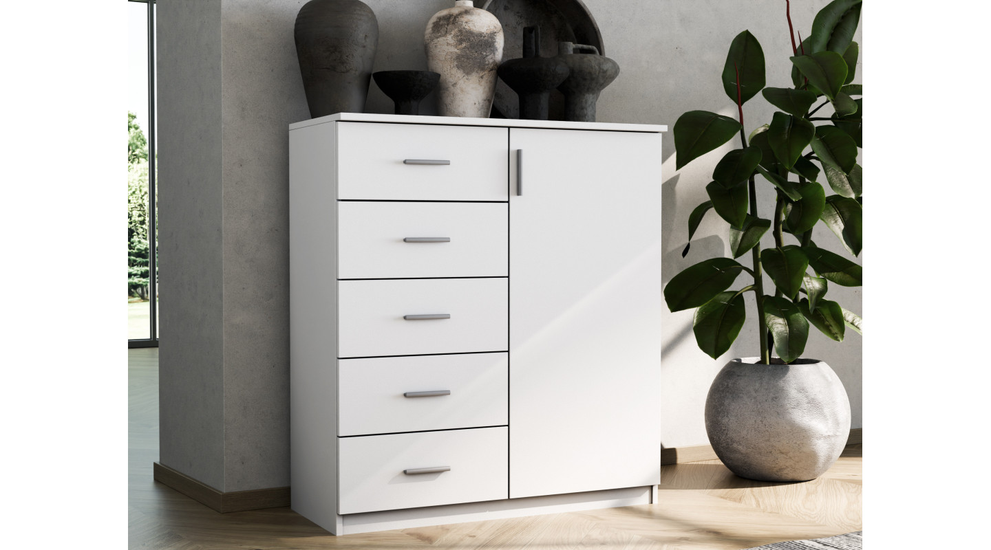 Commode 100 cm, tiroirs, armoire, fermeture silencieuse, aulne, pin, noyer, blanc