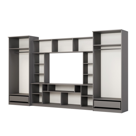 Vous cherchez un meuble vraiment grand et fonctionnel pour votre salon ou votre espace de vie ? Choisissez le meuble mural TAJGA, qui se compose de deux armoires, d'armoires, d'étagères et d'un meuble TV. C'est la solution parfaite pour ranger les vêtements, les bibelots et tous les autres articles nécessaires, ainsi que pour exposer l'équipement TV. Le meuble mural TAJGA offre à la fois fonctionnalité et attrait esthétique.