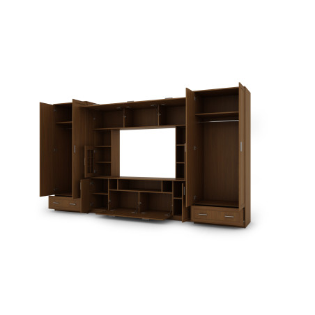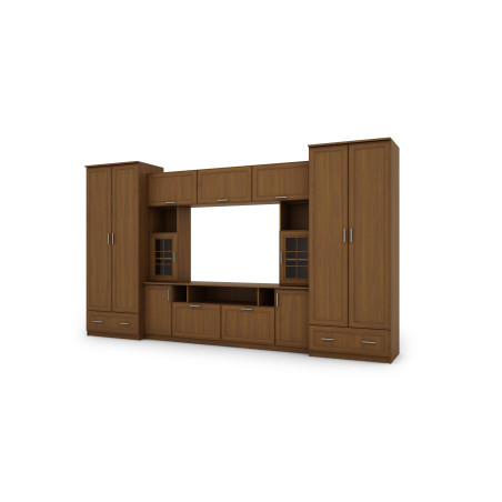 Deux armoires forment la partie principale du meuble mural. C'est un espace de rangement spacieux qui aide à maintenir l'ordre dans la pièce. Les armoires plus petites verrouillables sont parfaites pour ranger les petits objets, vous permettant de maintenir l'ordre dans la pièce.