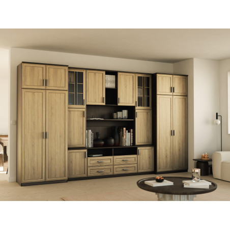 Grâce à son élégance et sa construction solide, l'ensemble mural SAWA est idéal pour les salons aménagés de manière traditionnelle. Son aspect classique souligne le caractère de l'aménagement. L'utilisation de matériaux de haute qualité couleur bois apporte chaleur et convivialité à la pièce.