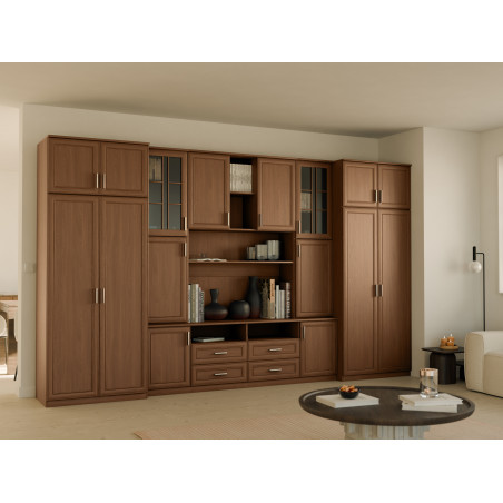 Grâce à son élégance et sa construction solide, l'ensemble mural SAWA est idéal pour les salons aménagés de manière traditionnelle. Son aspect classique souligne le caractère de l'aménagement. L'utilisation de matériaux de haute qualité couleur bois apporte chaleur et convivialité à la pièce.