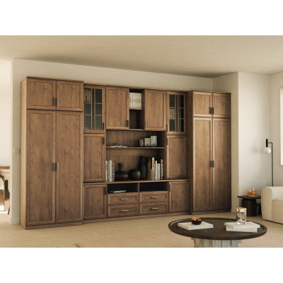 Grâce à son élégance et sa construction solide, l'ensemble mural SAWA est idéal pour les salons aménagés de manière traditionnelle. Son aspect classique souligne le caractère de l'aménagement. L'utilisation de matériaux de haute qualité couleur bois apporte chaleur et convivialité à la pièce.