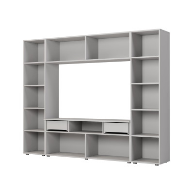 - une armoire TV inférieure avec une grande surface ouverte pour le téléviseur.
