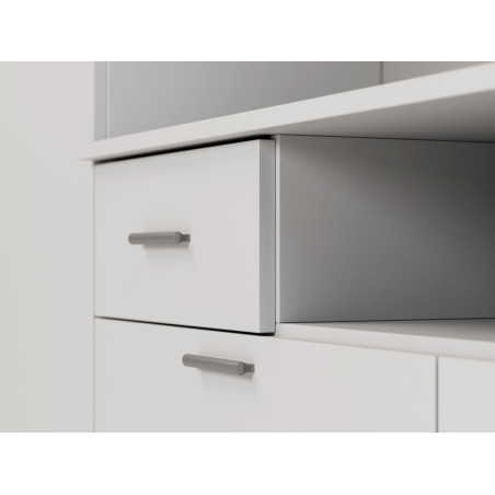 Le meuble TV avec armoire multimédia est un meuble élégant et fonctionnel qui s'intégrera parfaitement dans votre pièce. Un système complet qui combine étagères, armoires et espace dédié aux équipements de divertissement.