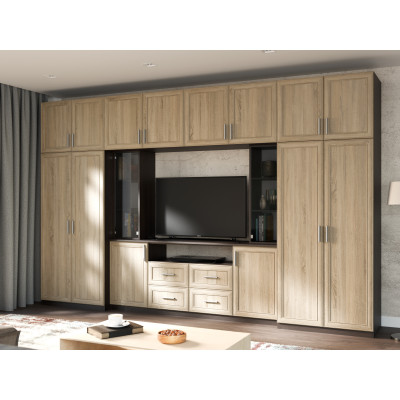 - surmeublement verrouillables avec étagères sur toute la largeur de l'ensemble. Grâce à eux, la hauteur totale du meuble de salon atteint 240 cm.