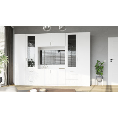 Avec une largeur impressionnante de 320 cm et une hauteur de 220 cm, LIVIO offre une énorme quantité d'espace de rangement, sans pour autant surcharger l'intérieur. C'est la solution idéale pour les grands comme les moyens salons.