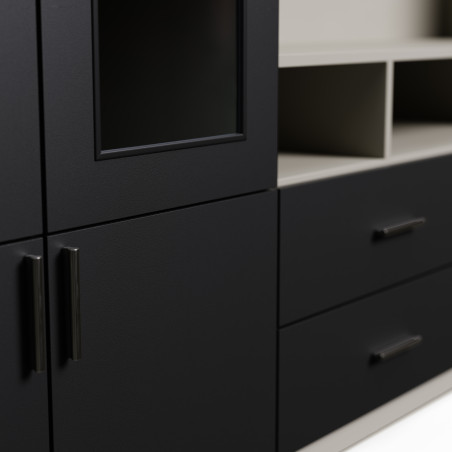 Vous cherchez un meuble élégant et fonctionnel qui transformera l'aspect de votre salon ? Découvrez le meuble TV Vero – une solution moderne qui allie style et praticité. Grâce à ses dimensions impressionnantes (largeur 303,2 cm, hauteur 240 cm), il offre beaucoup d'espace de rangement tout en conservant la légèreté de forme et l'apparence esthétique.