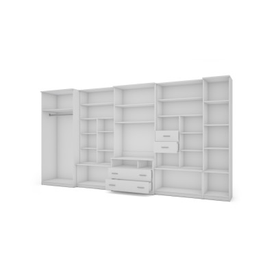 A bútor egy nagy ruhásszekrényből rúddal, fehérneműs szekrényből öt polccal, üvegvitrinekből, fiókokból, bárból, nyitott fülkékből és egy nagy fülkéből áll a televízió számára. Ez kiváló megoldás azoknak, akiknek sok tárolóhelyre van szükségük különféle tárgyak számára, a ruháktól a könyvekig, dekorációkig vagy elektronikus berendezésekig. A LENA szekrénysor lehetővé teszi a rend fenntartását a helyiségben, miközben könnyű hozzáférést biztosít a szükséges dolgokhoz.