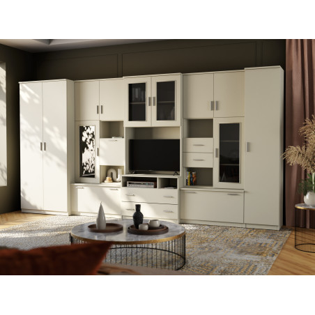 A bútor egy nagy ruhásszekrényből rúddal, fehérneműs szekrényből öt polccal, üvegvitrinekből, fiókokból, bárból, nyitott fülkékből és egy nagy fülkéből áll a televízió számára. Ez kiváló megoldás azoknak, akiknek sok tárolóhelyre van szükségük különféle tárgyak számára, a ruháktól a könyvekig, dekorációkig vagy elektronikus berendezésekig. A LENA szekrénysor lehetővé teszi a rend fenntartását a helyiségben, miközben könnyű hozzáférést biztosít a szükséges dolgokhoz.