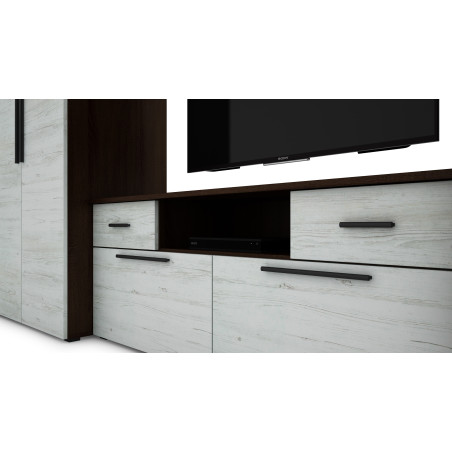 - Alsó RTV szekrény nagy nyitott felülettel a televízióhoz.