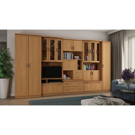 Tágas fiókokkal, bárral és ruhasszekrénnyel ellátott nappalibútor választásakor ne felejtse el a belső tér stílusához és színeihez igazítani. Különféle homlokzat színek állnak rendelkezésre, amelyek lehetővé teszik a nappali tökéletes berendezését.