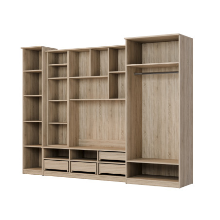 Az elegáns Bosman nappalibútor szekrényből, fiókokból, üvegezett szekrényekből, polcokból és TV-helyből áll, amely teljes szabadságot biztosít a televízió elhelyezésében. Válasszon lengyel gyártótól származó bútort, és teremtse meg álmai nappaliját.
