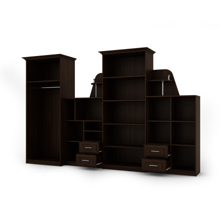 A TEXAS falszett moduláris bútor, ideális azok számára, akik mind a funkcionalitást, mind az esztétikát értékelik. Megkönnyíti az alapvető tárgyak tárolását és tökéletesen illeszkedik a nappalijába. A falszett elemei tökéletesen működnek együtt és könnyen megtalálják helyüket bármilyen belső térben. Könnyedén tárolhat bennük ruhákat, porcelán gyűjteményeket és könyveket. A bár hozzáférést biztosít az édességekhez, és a tágas szekrény barátságos hellyé válik, tele praktikus megoldásokkal, amelyek megkönnyítik a mindennapi működését.