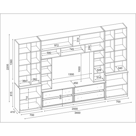 Elegáns, funkcionális és tágas bútordarabot keres, amely nappali szobája szíve lesz? Válassza a Modena bútor falat – lenyűgöző design és tágasság szempontjából. 340 cm széles és 220 cm magas, a Modena bútor fal kivételesen mutatós, hatalmas tárolóhelyet biztosítva.