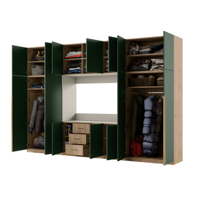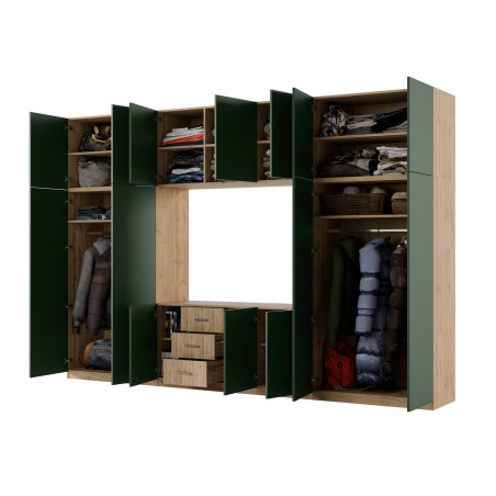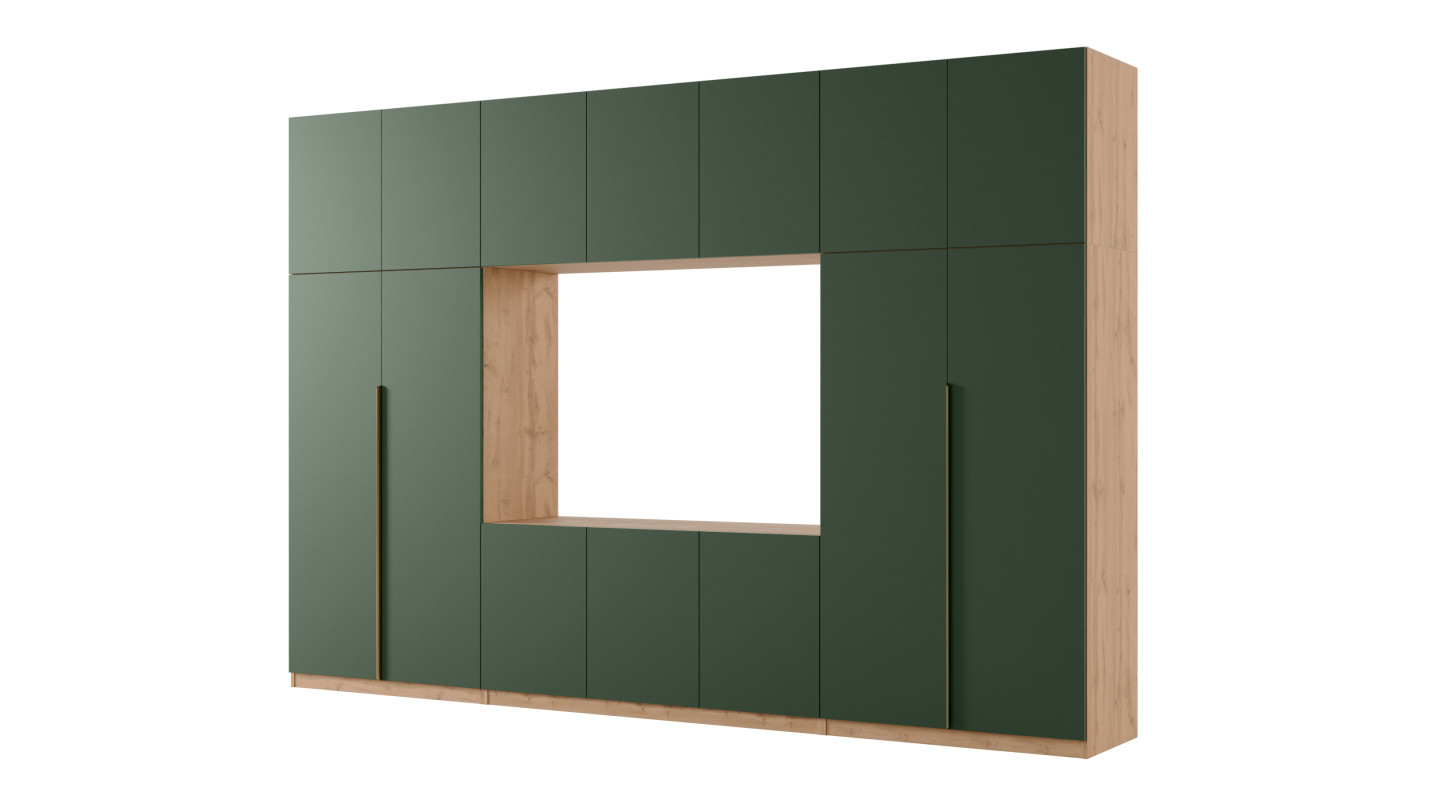 - záródó felső részek polcokkal a készlet teljes szélességében, amelyeknek köszönhetően a bútoregység teljes magassága egészen 240 cm.