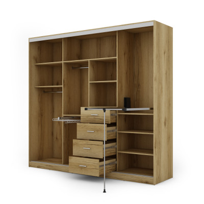 Szekrény 4D/260 LAMELLA, ruhaakasztó rudak, polcok, fiókok, pantográf, nadrágakasztó, prémium vasalatok / tölgy, fehér