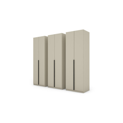 6 ajtós nyitható szekrény 240 x 240 cm – kasmír bézs fekete fogantyúkkal
