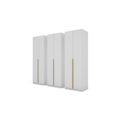 Az elegáns 6 ajtós szekrény 240x240 cm méretekkel klasszikus fehérben arany fogantyúkkal az időtlen stílus és a modern funkcionalitás tökéletes kombinációja. A világos színezés felragyogtatja a belső teret, optikailag megnagyobbítja és könnyedséget ad neki, míg az arany fogantyúk luxus érzetet keltenek és tökéletesen kiemelik a glamour, modern klasszikus vagy new yorki stílusú berendezést.