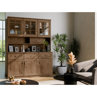 A klasszikus tálaló 120 egy rendkívül stílusos és elegáns bútor, amely sok helyiség dísze lehet. Rendkívüli megjelenését az üvegezett vitrinok és a tér befolyásolja, amely lehetővé teszi a tárgyak kiállítását. Kivételt képez a bútor alsó része, amely fedve marad.