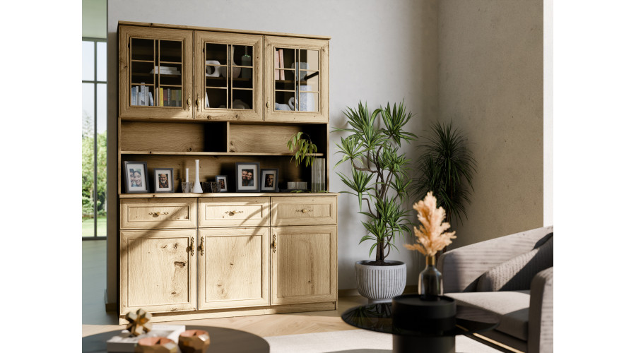 A klasszikus tálaló 150 egy rendkívül bájos bútor. Szinte minden belső térhez és stílushoz illeszkedik, amelyben a helyiség be van rendezve. Az otthonában a nappali, konyha vagy étkéző szép berendezési eleme lehet. Ha olyan bútort keres, amely nemcsak az edényeket, hanem más hasznos kiegészítőket vagy könyveket is elhelyez - válassza a tálaló 150-et az e-meblast.pl-től
