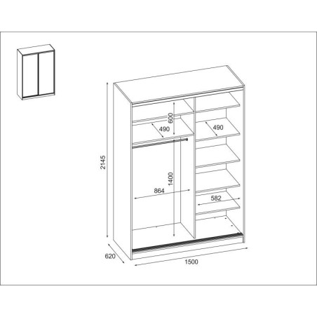 Szekrény 2D/150 - hét polc, rúd akasztókhoz
