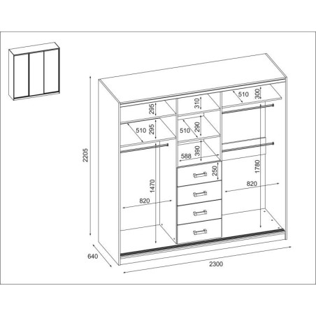 Tolóajtós szekrény 3D/230 - ruhafüggők, kosarak, polcok