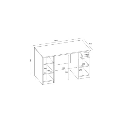 Wymiary 120×60 cm sprawiają, że biurko dobrze sprawdza się zarówno w mniejszych, jak i większych pokojach dziecięcych. Wysokość 73 cm zapewnia wygodne użytkowanie przy standardowym krześle, a kompaktowa forma pozwala efektywnie wykorzystać przestrzeń.