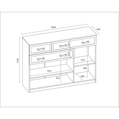 Górny blat komody stanowi dodatkową powierzchnię użytkową. Może być wykorzystany do ekspozycji dekoracji, ramek ze zdjęciami, lamp stołowych lub roślin doniczkowych, uzupełniając aranżację salonu i nadając jej uporządkowany charakter.