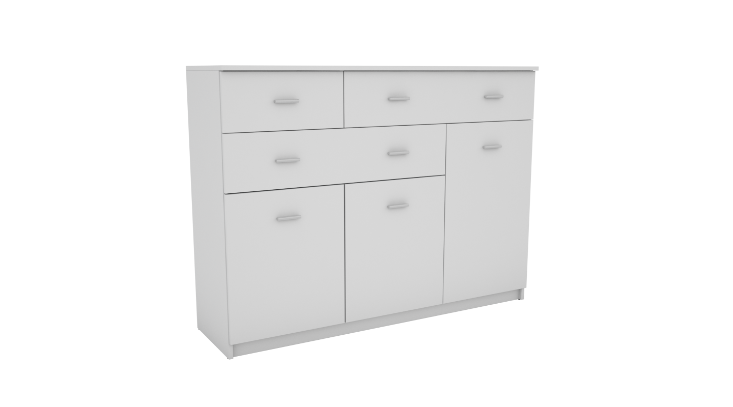 Kolor Biel nadaje komodzie jasny, neutralny wygląd i optycznie rozjaśnia wnętrze. Jednolita powierzchnia dobrze komponuje się z różnymi stylami aranżacyjnymi, stanowiąc uniwersalne tło dla dodatków, tekstyliów oraz pozostałych elementów wyposażenia salonu.