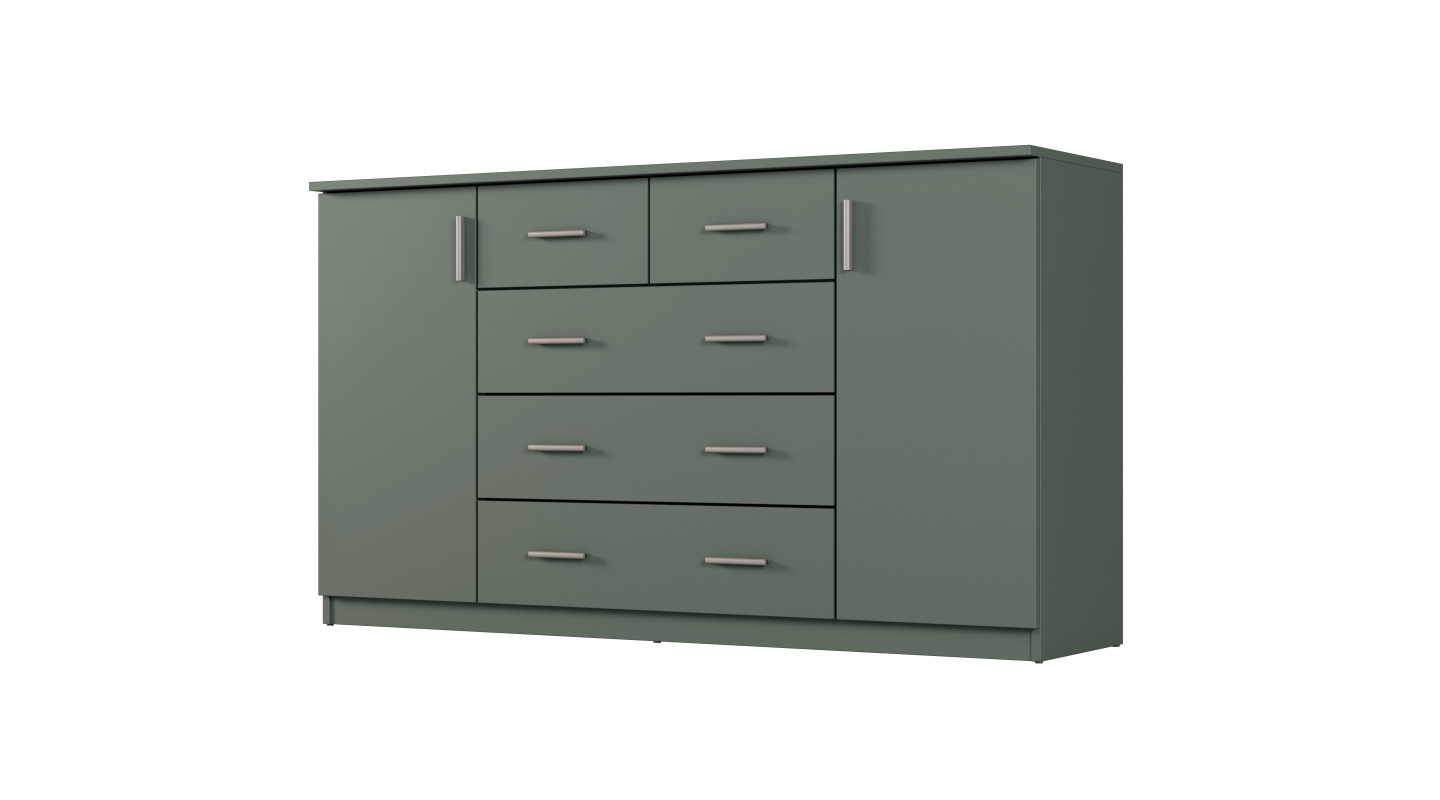 Pojemna komoda z szafkami oraz małymi i dużymi szufladami 160 cm Zielony Butelkowy – Linea