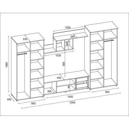 Szukasz mebla z pojemnymi szafami i szafką multimedialną? Poznaj meblościankę JOWISZ, która posiada dwie bieliźniarki oraz szafkę RTV.