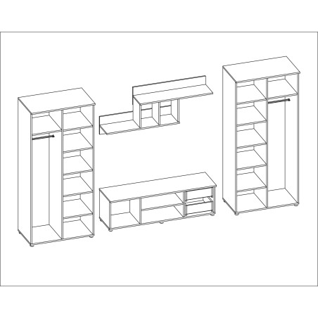 Meblościanka, dwie szafy, bieliźniarki, RTV, półki - JOWISZ